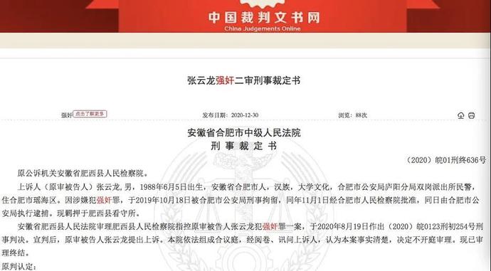 按被害(hài)人的陳述,張雲龍總(zǒng)共強奸其四次(cì),其中第一(yī)次為口交(jiāo)。