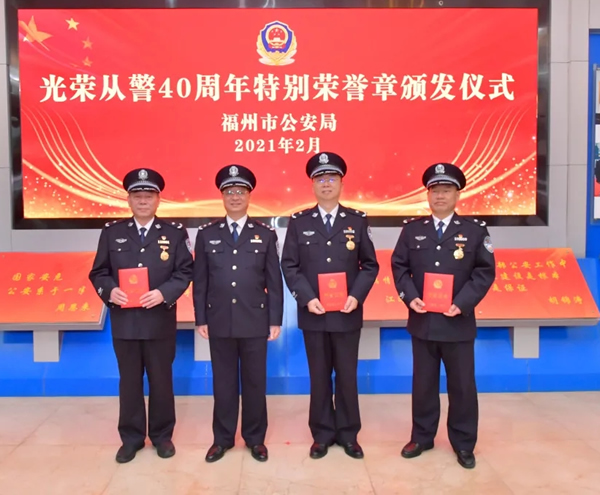 截至目前,全省已(yǐ)頒發十一批公安民警榮譽章、榮譽證(zhèng)書,根據(jù)新修訂的(de)《福建省公安民警榮譽章(zhāng)榮(róng)譽證書管理辦法》,此(cǐ)次為從警40周年民警頒(bān)發特別榮譽章為全(quán)省首批次,我市共(gòng)有47名民警獲(huò)得特別榮譽章和證書