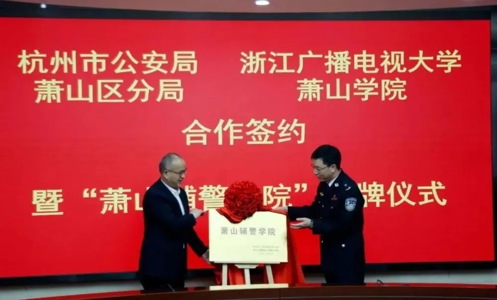 儀式上,吳(wú)重建與浙江廣播電視大學蕭(xiāo)山學院(yuàn)負責人簽署合(hé)作協議,張亮和俞(yú)沈江共同為“蕭山輔(fǔ)警學院”揭牌。最(zuì)後,張亮致辭。