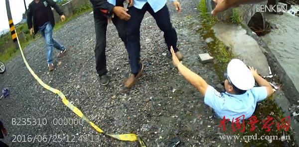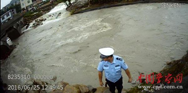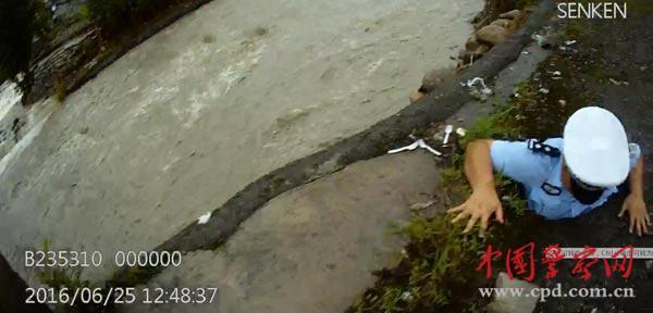 “撲——”當劉勇快要走到橋頭的欄杆附近時,他所站的水泥路麵突(tū)然下沉,劉勇本能的張開雙臂,正是(shì)這一動作,讓(ràng)他卡在凹陷的水(shuǐ)泥路麵上,沒有直接墜入激流中。“當(dāng)時(shí),我(wǒ)們正在設置警戒線(xiàn)。聽到異響後,我回頭一看,發現劉所(suǒ)長掉進坑洞裏去了,頓時(shí)心都提到嗓子眼上來了。”回憶當時(shí)的情景,警察王(wáng)小波仍(réng)是(shì)驚魂未定。當時王小波(bō)與劉勇的位(wèi)置最(zuì)近,他攜帶(dài)的執法(fǎ)記錄儀完整(zhěng)地記錄了當時的情景。“我立即拽住劉所長,並大聲呼(hū)救。”