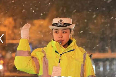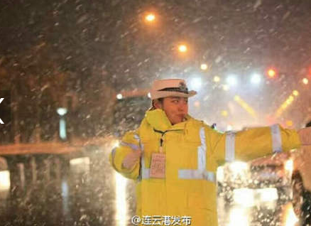 警用裝備采購網分享消息:2016年11月22日下午晚高峰,江蘇港城首場降雪依然很大,但是連雲港交警海州一大隊女子中隊隴海崗(gǎng)的陳(chén)姿璿身穿新式警用熒(yíng)光防寒(hán)服一直堅守在自己的崗位上,美麗的臉龐在白色警(jǐng)帽(mào)和熒光服的對比下顯得更加青純美麗,各大網友一起為她點讚。