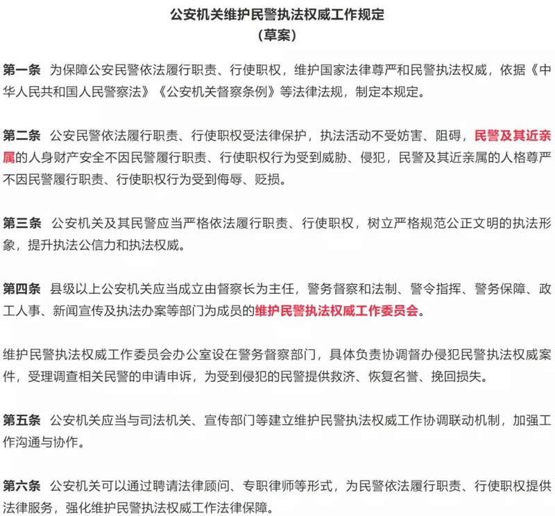 此次草案的(de)出台,將使維護民(mín)警執法權威“有(yǒu)規可循”,小警君通篇閱讀,發現了很多亮點:
