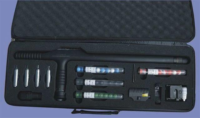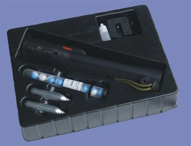 本產品是一款集(jí)發射、LED手電、紅色激光於一體的手電(diàn)式發射器,它以高壓氣體為動力可連續發射多種彈丸,實現了強(qiáng)光照明和激光瞄準合為一體。手電式發射器體積小,輕(qīng)便,易於隨身攜帶,機動性強。可以選擇辣椒(jiāo)球、記號球、香粉球、橡膠(jiāo)球4種球體,靈活應用於多種場合。
