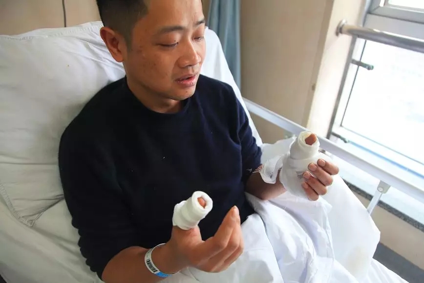 1月29日上午,記(jì)者在醫院外(wài)科樓內見到了吳(wú)方(fāng)健,醫(yī)生診斷他左手大拇指肌腱和神經全(quán)部被切斷,需要進(jìn)行手術。談起28日晚(wǎn)的經曆,吳(wú)方健微笑著說:“哪怕(pà)我的手指被切斷,也不能讓人質受傷。”