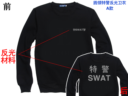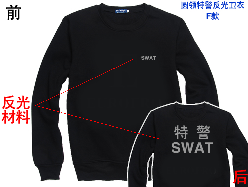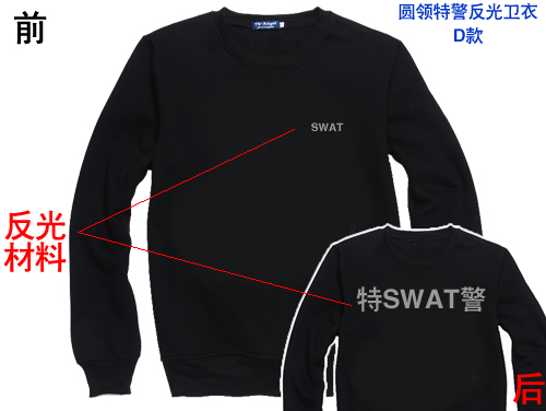 以下特警圓領衛衣款式(shì)可(kě)以(yǐ)選擇製作,可按客戶單位要求定製,
