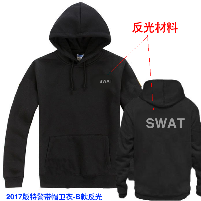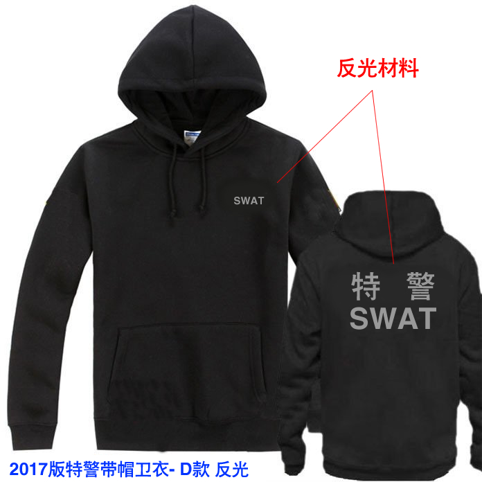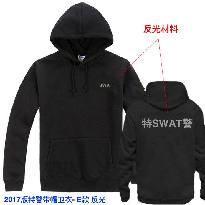 全新版(bǎn)特警(jǐng)帶帽衛衣,提供(gòng)了多種款式(shì)選擇,同時各款式又增加了反光款,圖案做工耐用(yòng)性(xìng)能(néng)和布料升級。