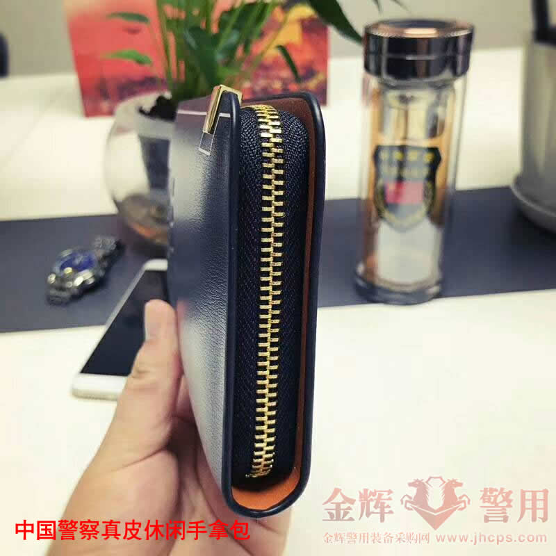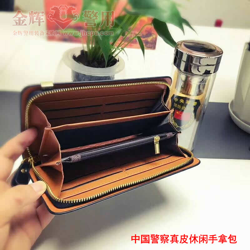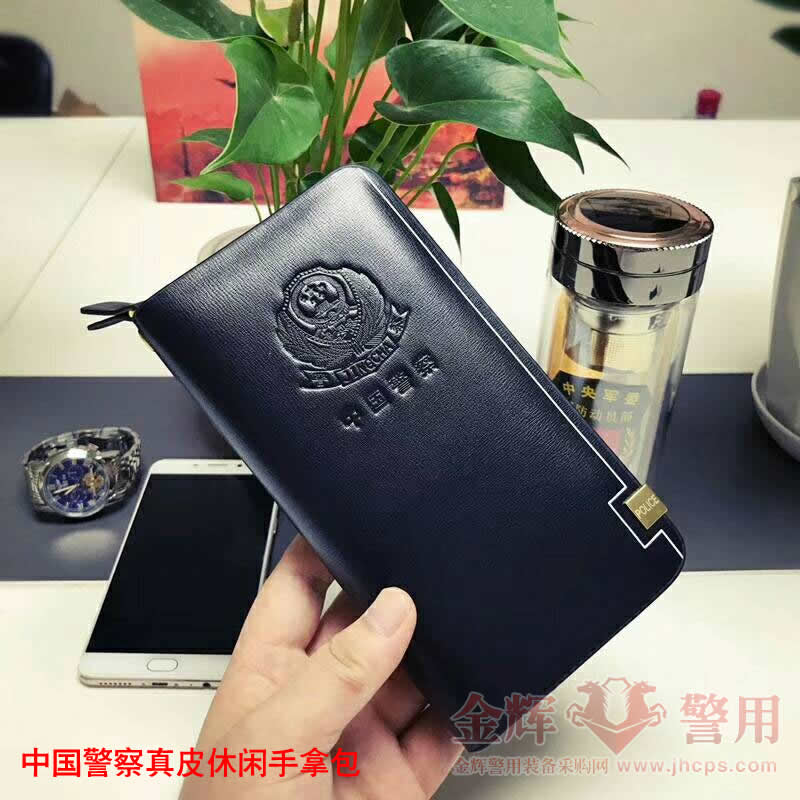說明:2018新款公安單位定(dìng)製配發(fā)款休閑頭層(céng)牛皮手包,產品做工精致,鋼(gāng)壓(yā)警徽圖(tú)案做工精湛。添加同色手腕帶便於攜帶。可存放各種卡片和手機。