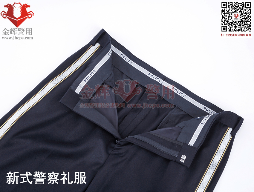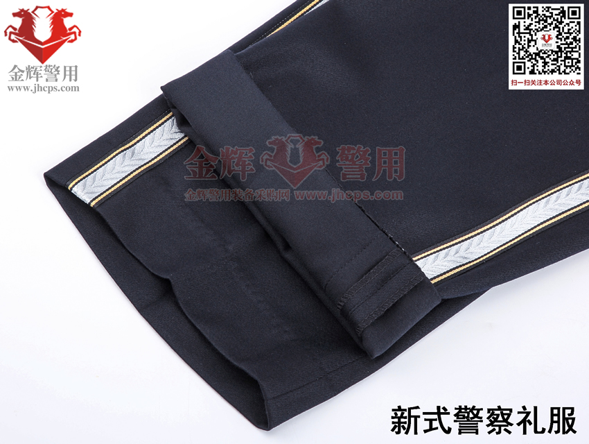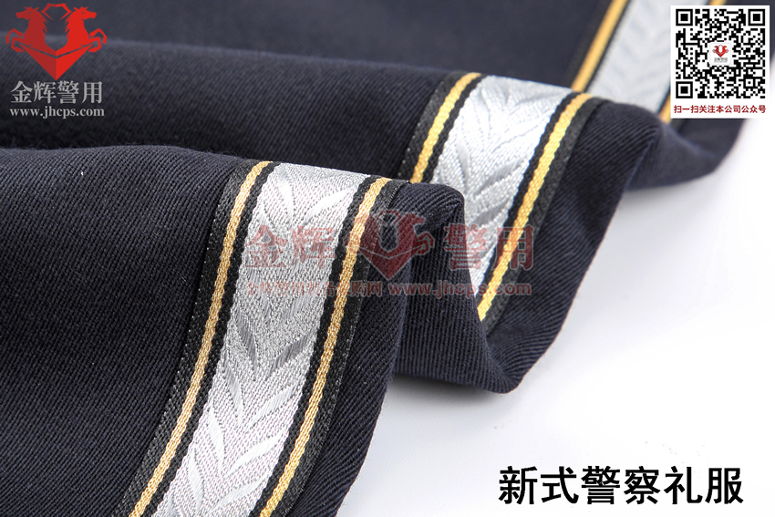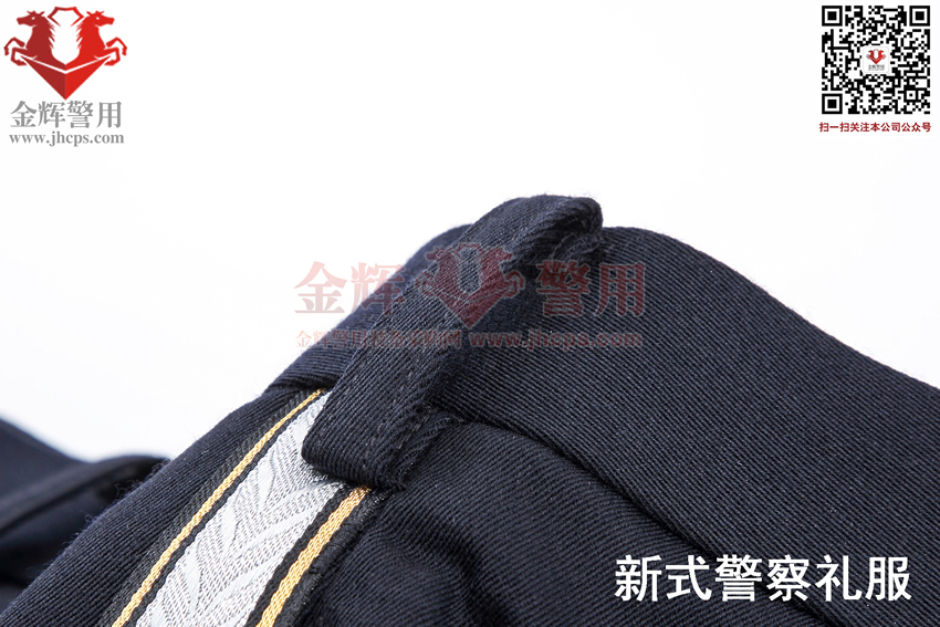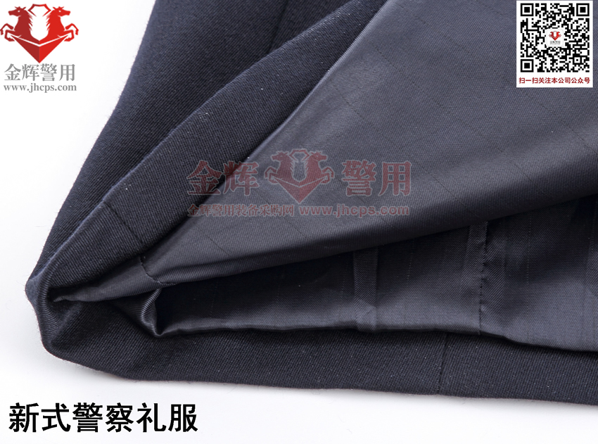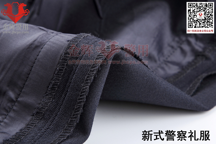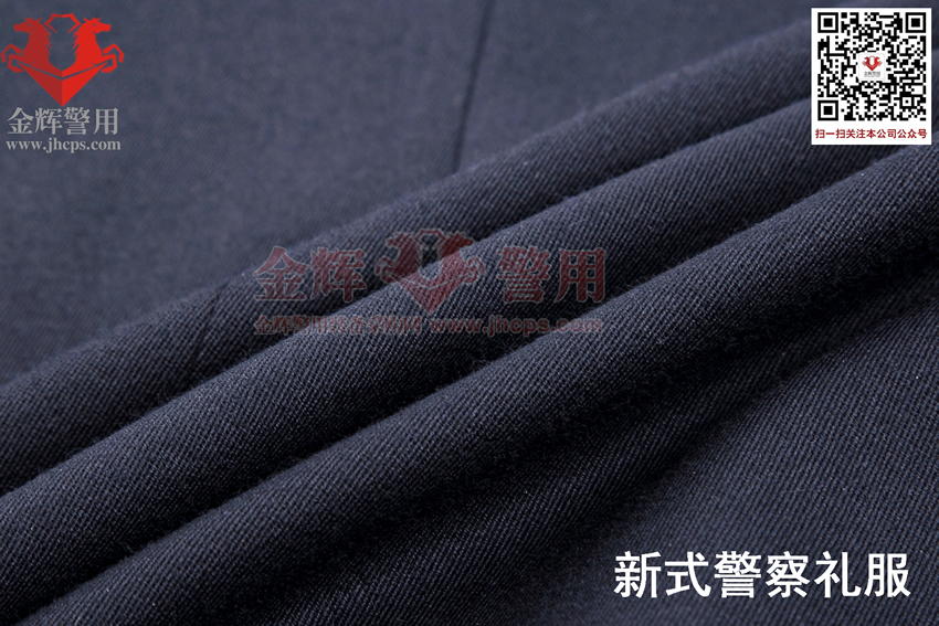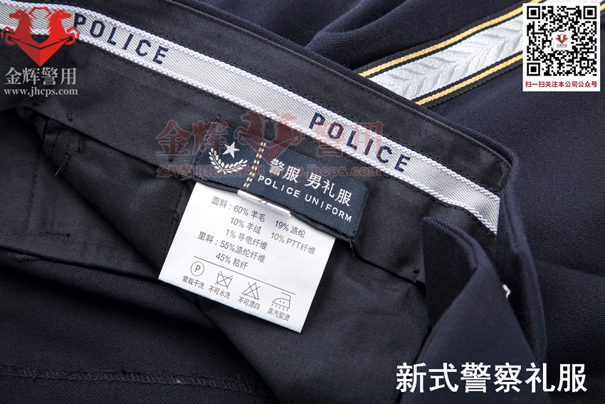 警察禮(lǐ)服上衣(yī)和褲子麵料:60%羊毛(máo),19%滌綸,10%羊絨,10%PPT纖維,1%導電纖維。