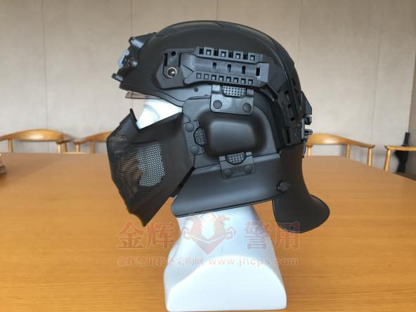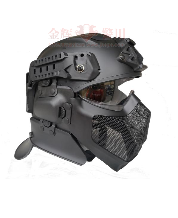 其盔體按國際並符合公安部防暴頭盔標準,內置隱(yǐn)藏漸變護目鏡及(jí)側(cè)導軌外懸掛(guà)式快速裝卸防護麵罩,與盔體密合(hé);具(jù)有(yǒu)質(zhì)輕、高強度、外(wài)形威(wēi)嚴、雙鏡鏡片透光(guāng)率好,視(shì)野(yě)開闊、佩戴(dài)緩衝減震舒適、牢靠、秒速人盔分離優點是警務人員(yuán)在反恐反暴鬥爭中為保障自身(shēn)安全。