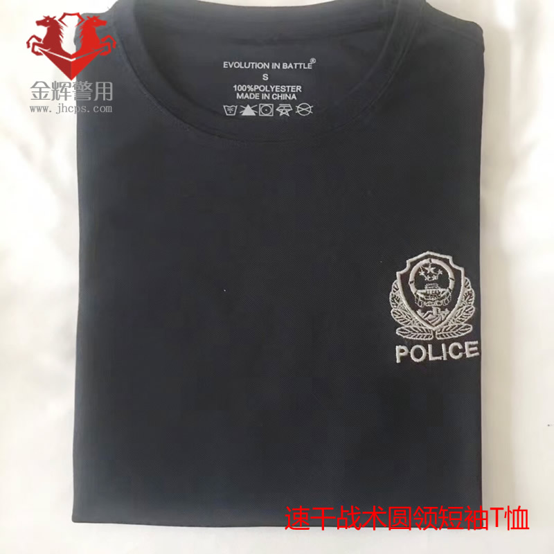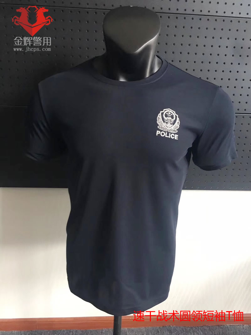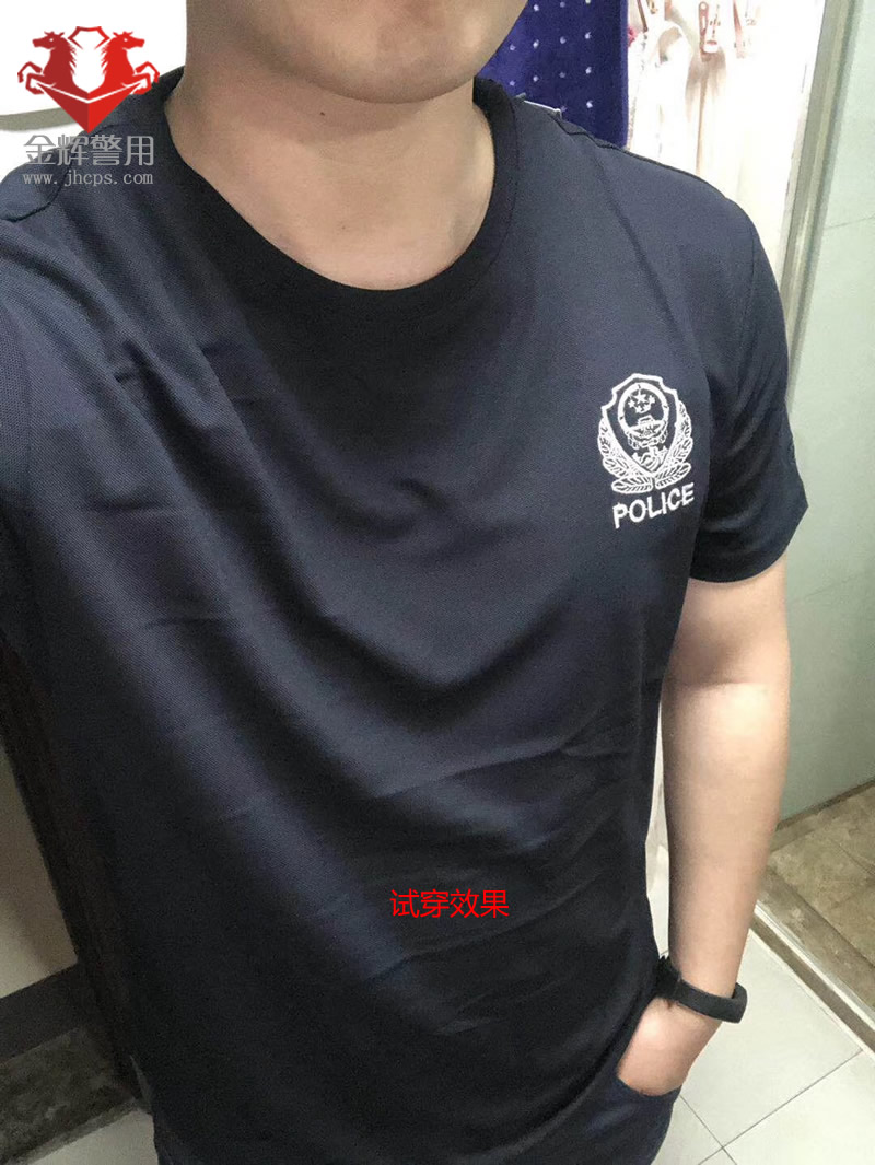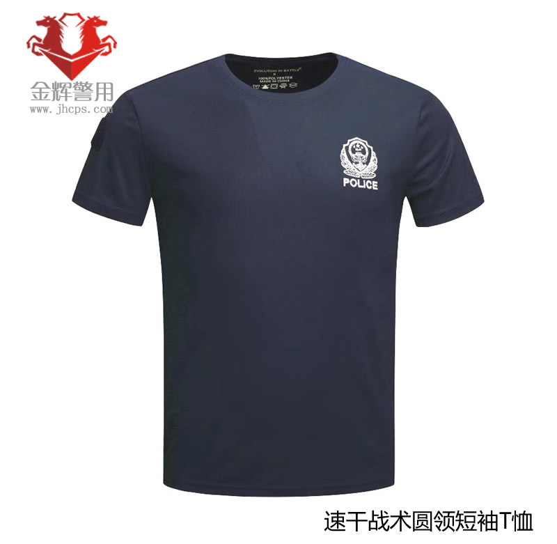 2024年公安部入圍企(qǐ)業產品,速幹警用短袖T恤,藏藍色,可配套同款麵料速幹短褲(kù)。