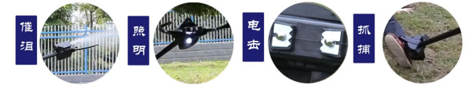 一、優勢及特點 1、防暴叉前端安裝有電子開關(guān)控製的警用催(cuī)淚噴射器,可噴射數米遠的催淚劑。 2、防(fáng)暴叉壓製部分帶兩個電擊針(zhēn),可刺穿衣褲(kù)實施(shī)高壓脈衝電擊如果反抗則啟動電擊將其擊倒,實施抓捕。 3、防暴叉自帶強光電筒對恐怖份子進行警告和幹擾視線;實現晚間執行任務照明等作用,實現防暴叉(chā)的多功能用途。 4、防暴叉尾部裝有可擊碎車(chē)窗玻璃(lí)的安全錘,可作為執法過程中的擊打之用。 二、產品參數 1.工作電壓:DC3.6—4.2 V 2.充電器電壓: AC100-220V 3.電池(chí)容量:聚合物理電子充電電池>350 mAh 4.脈(mò)衝高壓輸出範圍:1000—2000V 5.脈衝輸出(chū)電流範圍:0.05—0.1mA 6.催淚劑: 不致盲 7.尖銳性: 叉頭圓滑不致(zhì)傷 8.安全電流:<10 mA 9.結構(gòu):高壓模塊與電擊(jī)部分連接緊(jǐn) 三、產品資(zī)質 該產品(pǐn)已獲國家專利證書,並經公安部安全防範報警係統產品質量監督檢驗測試(shì)中心檢測合格。
