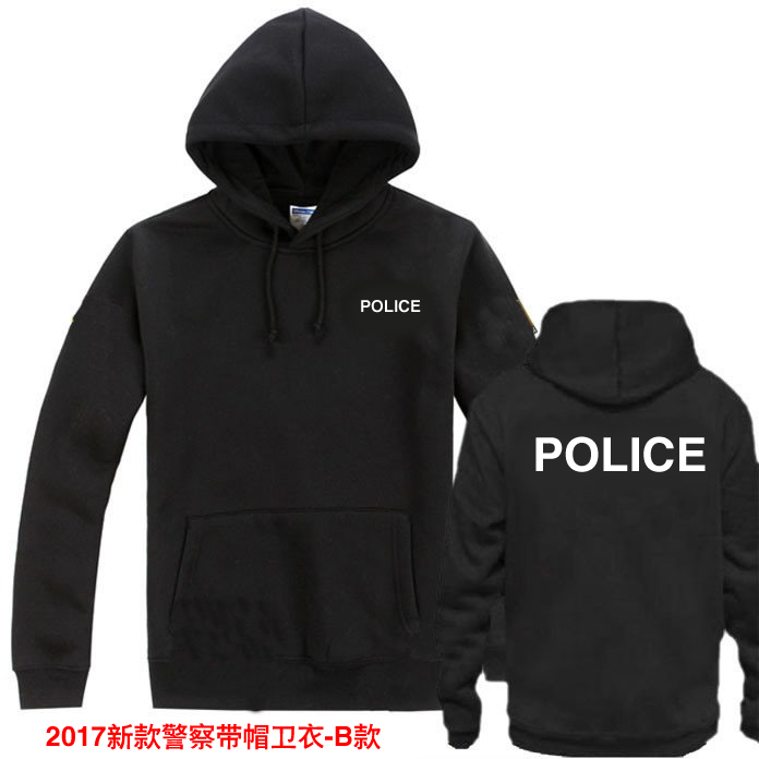 2017新式(shì)警察春(chūn)秋冬季套頭帶(dài)帽(mào)休(xiū)閑訓練衛衣 POLICE休閑警服 警察純棉衛衣