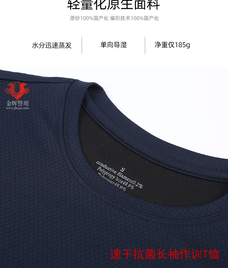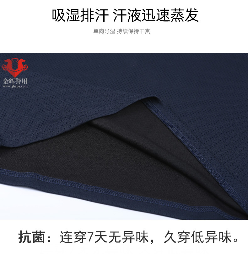 公安(ān)警用長(zhǎng)袖T恤衫,材料為(wéi)抗菌單導速幹(gàn)麵料,具備防臭速幹等功能,長(zhǎng)時間穿著或者出汗量大者更合適,透氣涼(liáng)爽,麵料柔軟舒(shū)適。