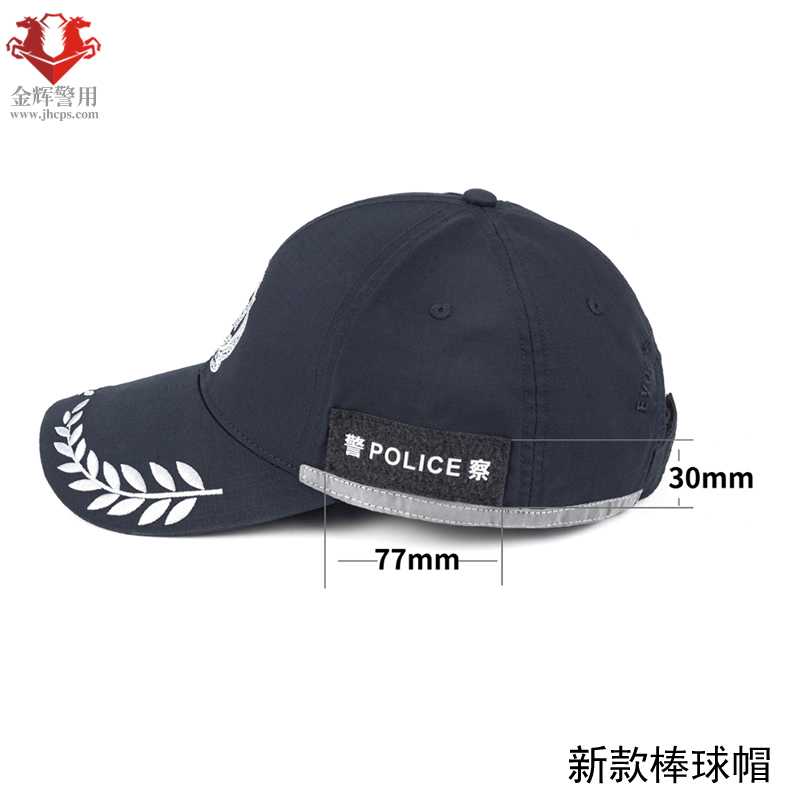 麵料成(chéng)分:TC65/35(65%聚酯纖(xiān)維 35%棉 )±5% 帽簷上麵帶有銀(yín)光圖案刺繡。 帽簷(yán)底部絨麵,有效杜絕反光影響視覺。 帽子側麵帶有絨麵魔術貼並留有空隙(xì),可穿插固(gù)定眼鏡,魔術貼外麵有POLICE警察字樣 帽子(zǐ)下邊沿帶有反(fǎn)光條設計 帽子背麵魔術貼設計,可隨意調節頭圍大小。 產品出自(zì)公安部(bù)入圍企業。
