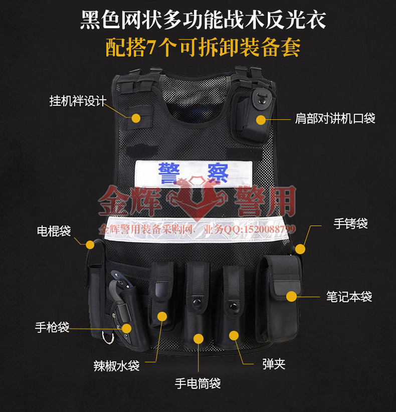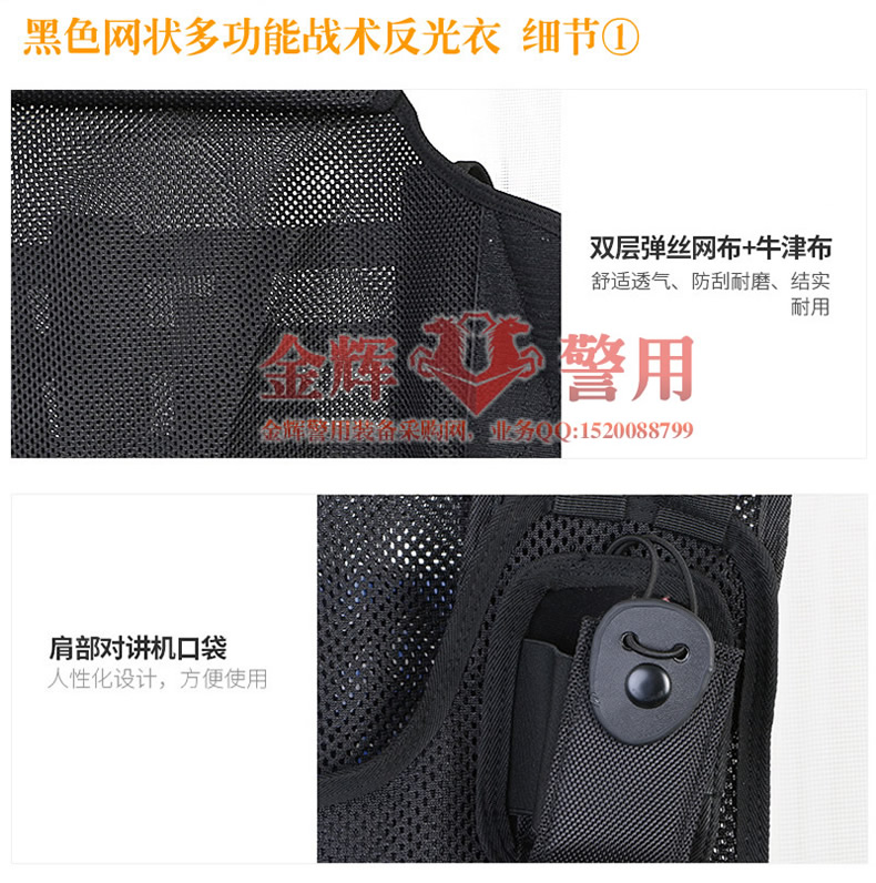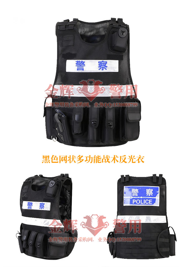警察夏季反光衣(yī),黑色警察作戰反光衣,警用(yòng)反光馬甲,特警作戰反光衣,特警裝備反光服。
