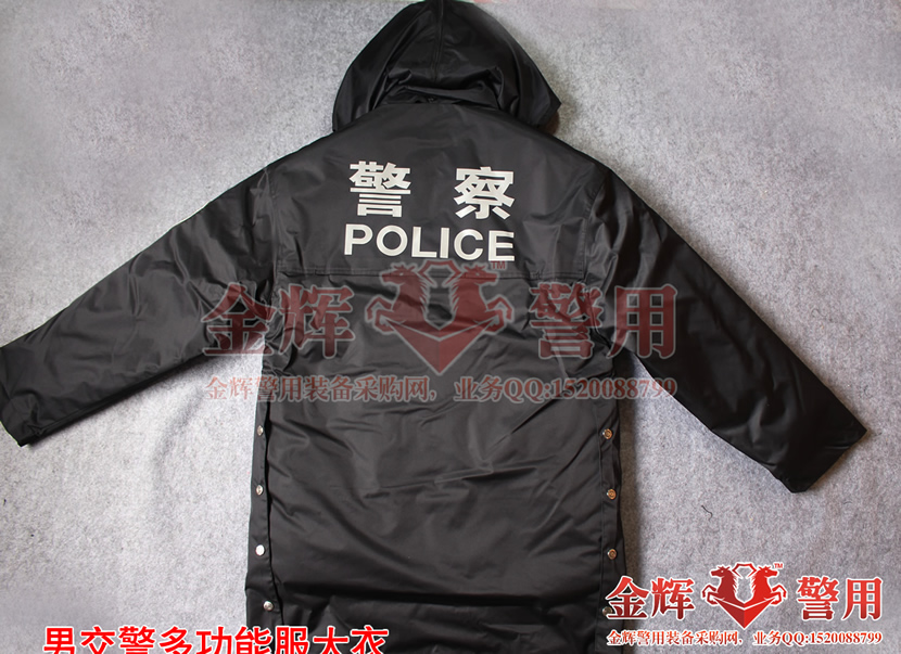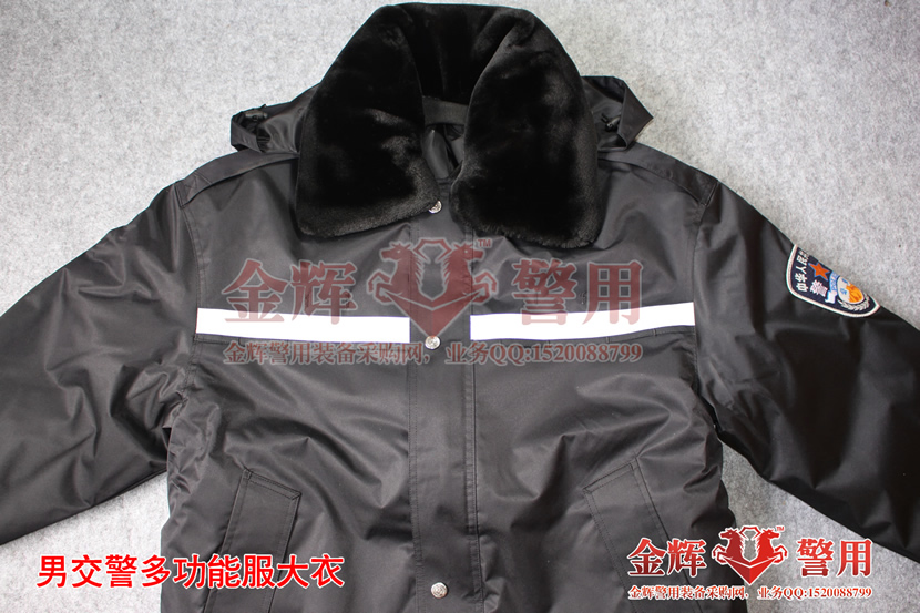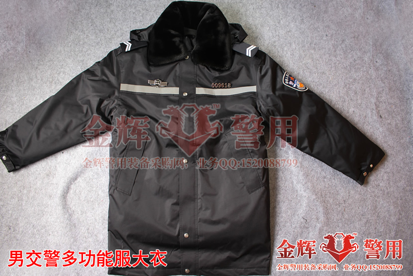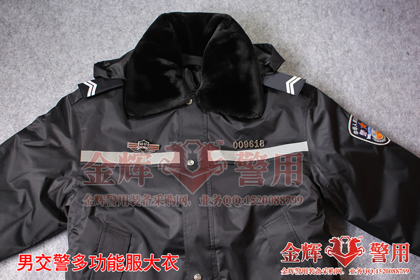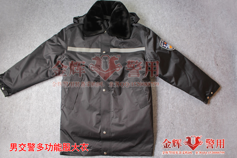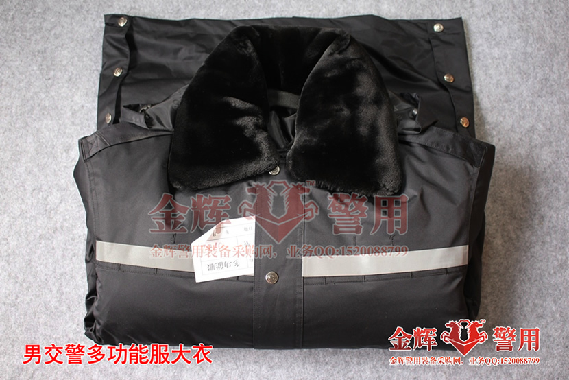 交警男大衣,男交警多功能服,新款男交(jiāo)巡警款99式警用(yòng)多(duō)功能執勤服也(yě)叫(jiào)交警大衣,本款采(cǎi)用優(yōu)質防水布料,具有防水、防雪、防風等功能,內膽采用羊毛和棉(mián)等材質保暖性能好,產品質量符合(hé)裝備要求(qiú),特別適合冬季戶外(wài)執勤一線交警穿(chuān)著,外添加3M反(fǎn)光條和反光警察大字,燈光照射下非常醒目,突出安全性好。