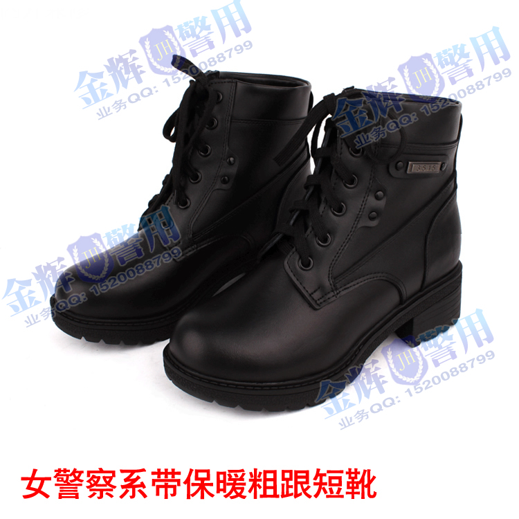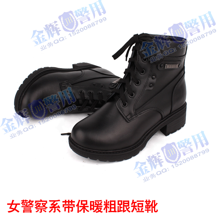 女警察冬季係(xì)帶粗跟保暖雪地工作休閑警用短靴 女警用皮鞋