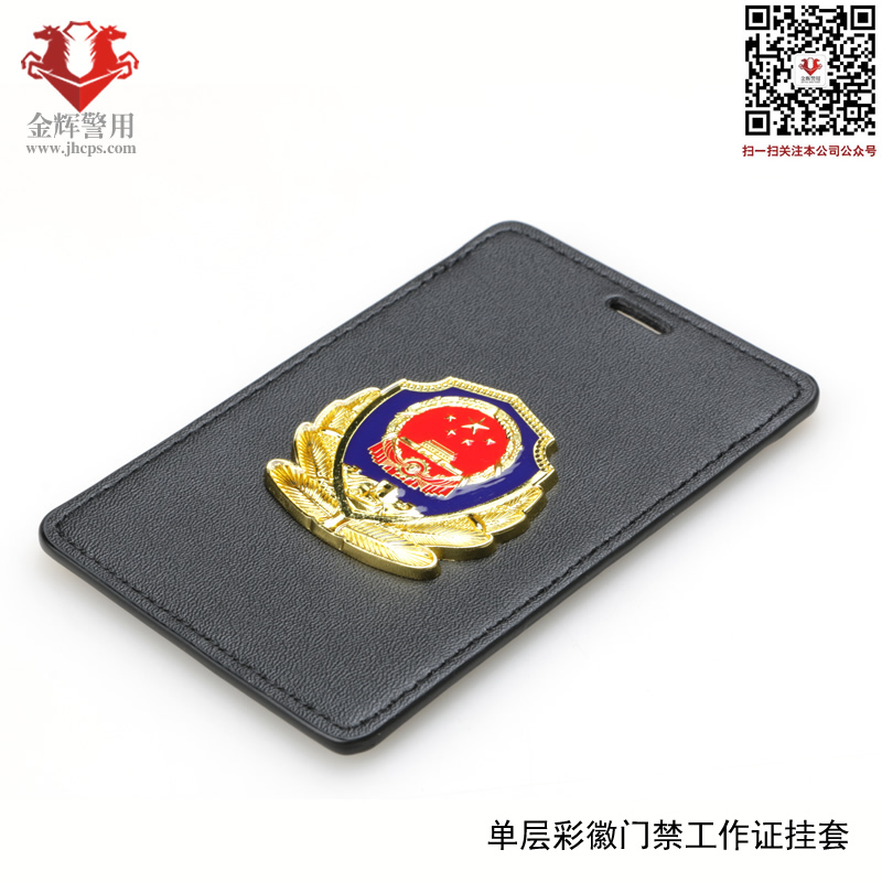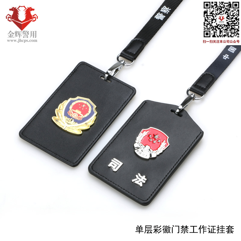 牛(niú)皮二層皮材料,黑色。單獨警徽設(shè)計,配掛繩。