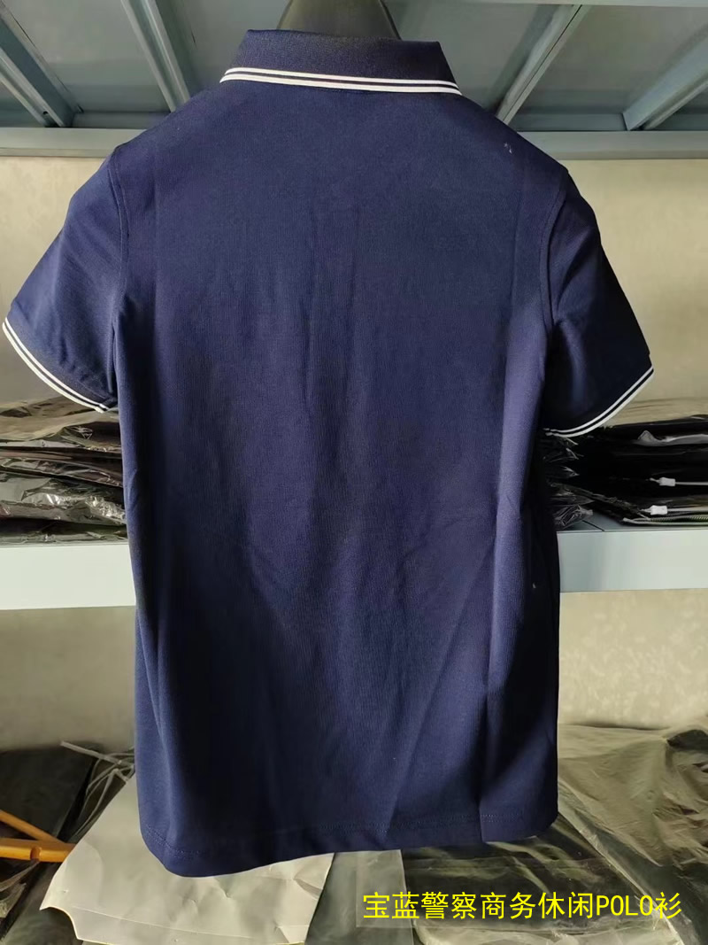 警務翻領文化POLO衫,麵(miàn)料含60%棉,40%桑蠶絲,寶藍色,精致刺繡警察POLICE字母。商(shāng)務,休(xiū)閑,工(gōng)作三不誤。