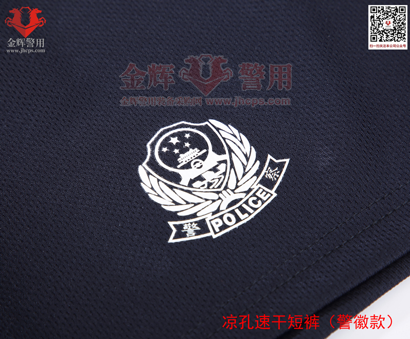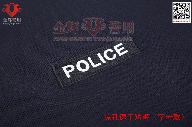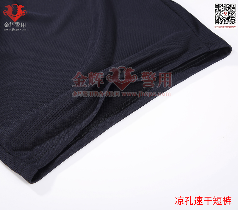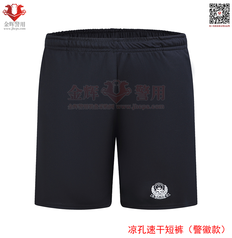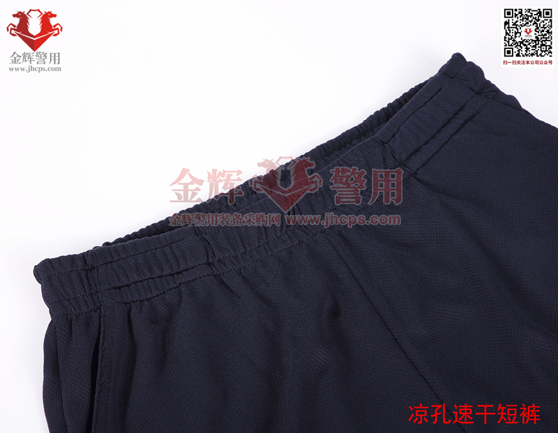 警用速幹(gàn)體能運動短褲,涼孔冰(bīng)絲蠶絲麵(miàn)料,顏(yán)色是藏青色,型號齊(qí)全,可選警徽款或字母款,可配套同麵料上衣。