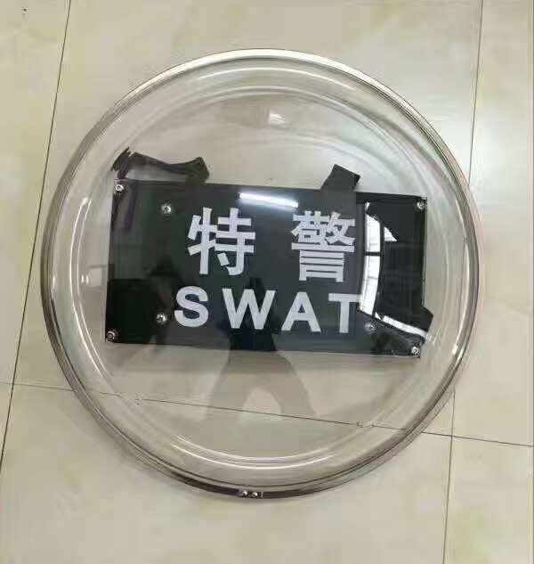 外觀:PC警(jǐng)用防護圓盾牌(pái),盾牌的周邊金屬結構件經過表麵防鏽處理。外觀(guān)光滑,無可視的凹坑(kēng)、突起、氣泡、毛刺、尖角、劃傷、斑點、脫膠及起皮等缺陷。盾牌正麵上方居中位置標(biāo)識中文警察(chá)和英(yīng)文大(dà)寫黑體,文字可根據單位要求定做。