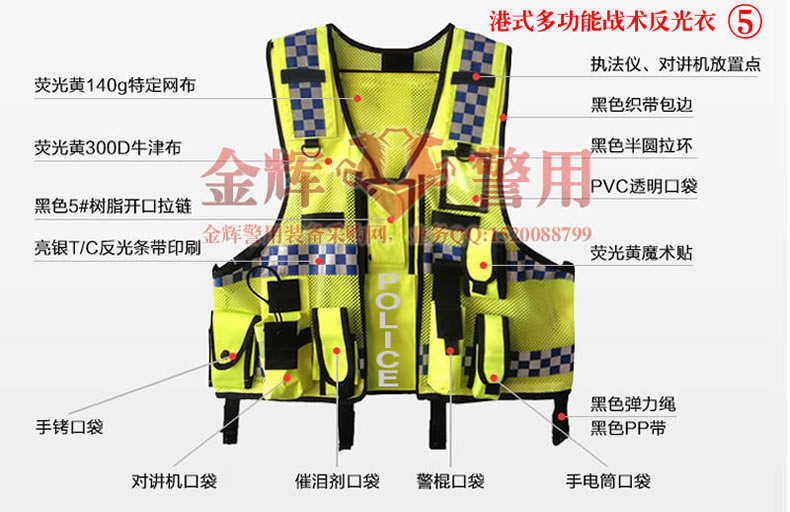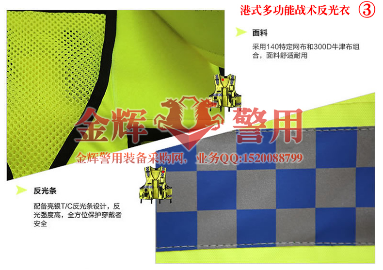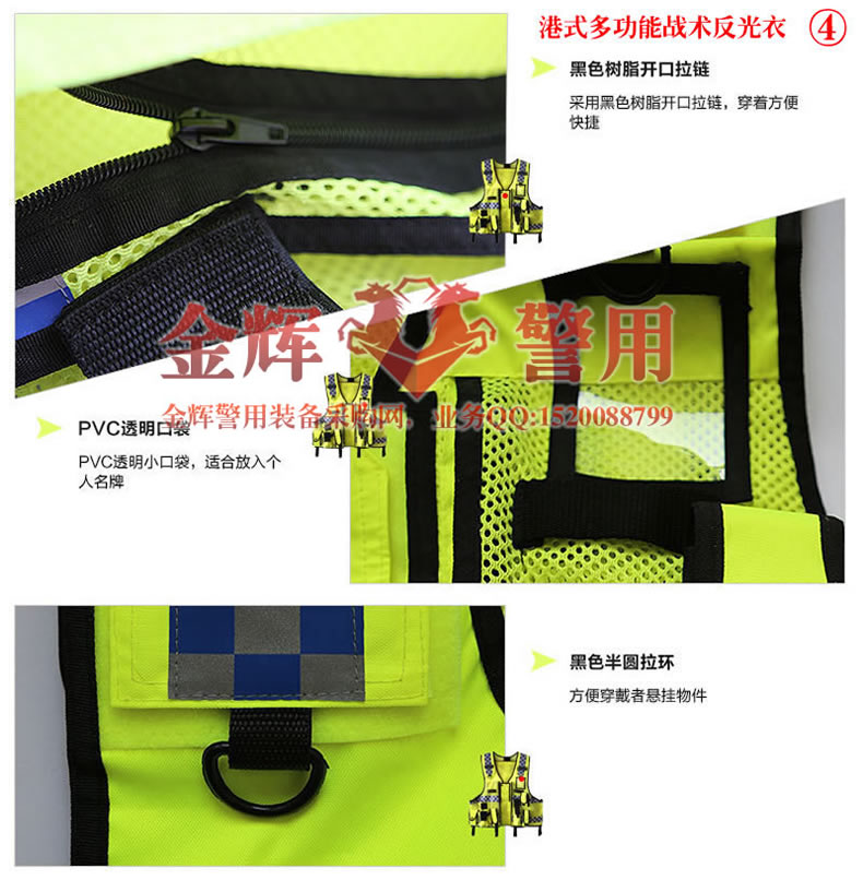 新版交警裝備反光執勤服可以按上級執勤要求攜帶(dài)警用執勤裝備,省去了以往攜帶警用多功能腰帶的麻煩,產品具有(yǒu)可拆卸性,如果不需(xū)要的配件可以拆下(xià),需要的時候再安裝上去,3M反光材(cái)料和(hé)熒光材料,性能超乎所有執勤反光衣,是公(gōng)安部(bù)新型裝備。