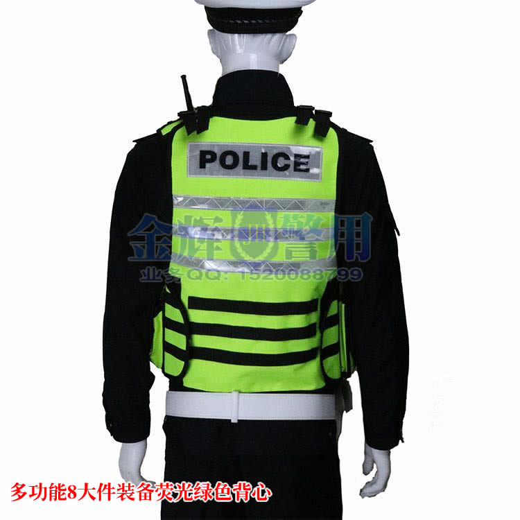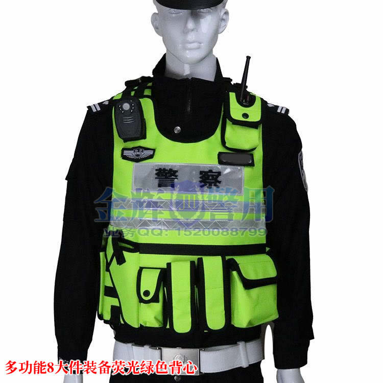 帶警用裝備套多功能(néng)反光背心 熒光(guāng)綠色(sè)警察執勤馬甲 新款交警(jǐng)反光衣 正品