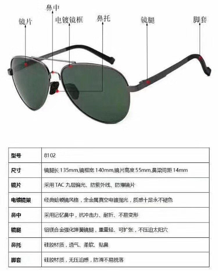 包裝清單:一付眼鏡,一張偏光測試卡,一塊擦布,一張警察卡, 一個眼鏡皮包, 一個眼鏡盒,一個(gè)手提袋(dài)