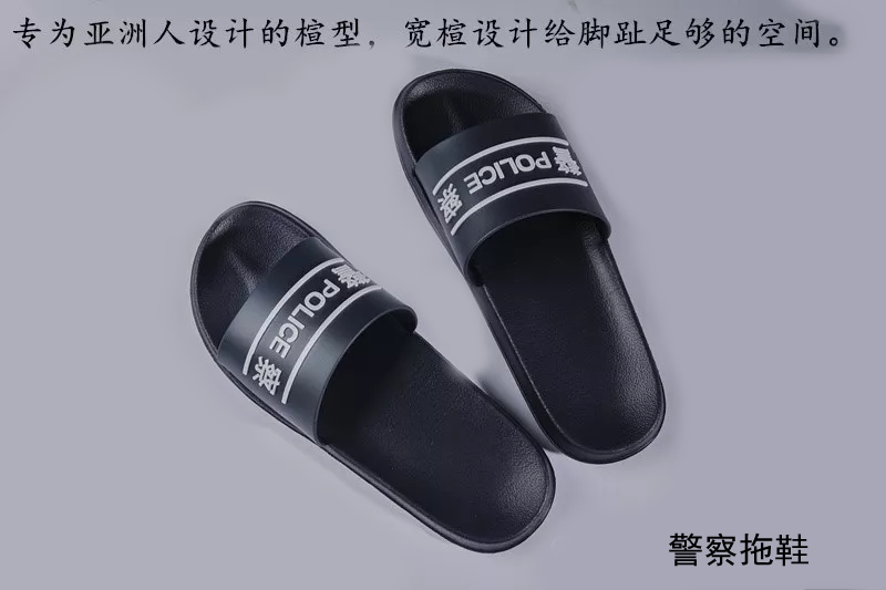 原裝警察拖鞋,采用EVA環保高(gāo)弾材料+天然環保油配方+樹脂PVC。