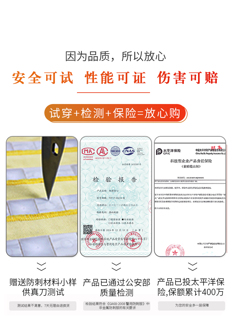 內穿式警用(yòng)防刺服(fú),已經越來越收到重(chóng)視了。內穿式防(fáng)刺服實際用途卻(què)非常重(chóng)要,便衣行動或者緝毒民警必備的產品,雖然(rán)個別單位不采購,自己掏腰包,對自己負責,對家庭負責。更多(duō)使用產品歡迎關注本公司微信公眾號或(huò)者網址。