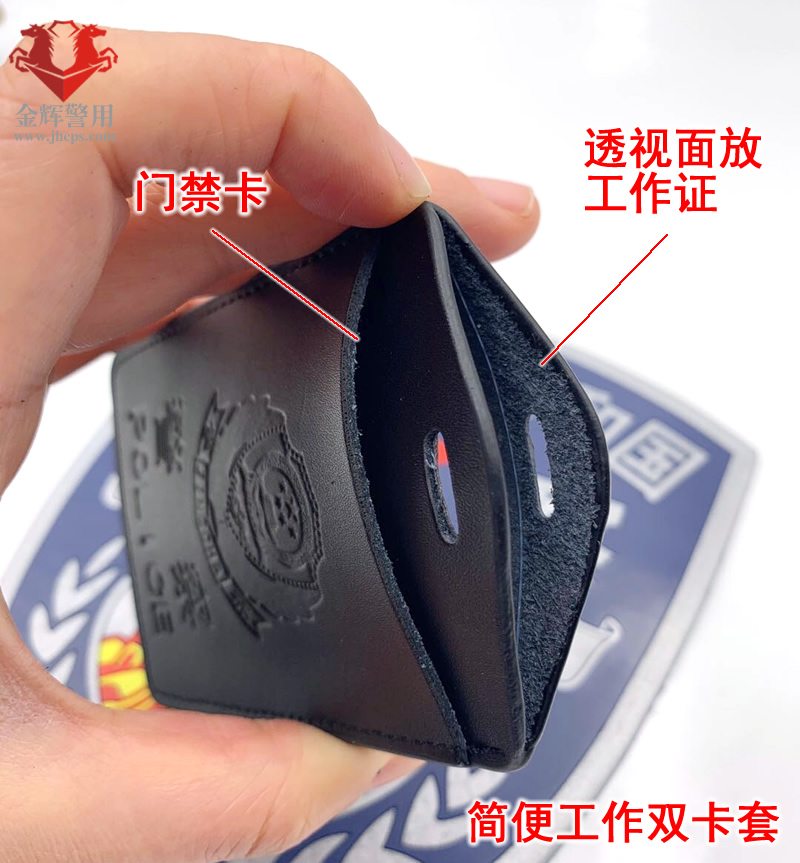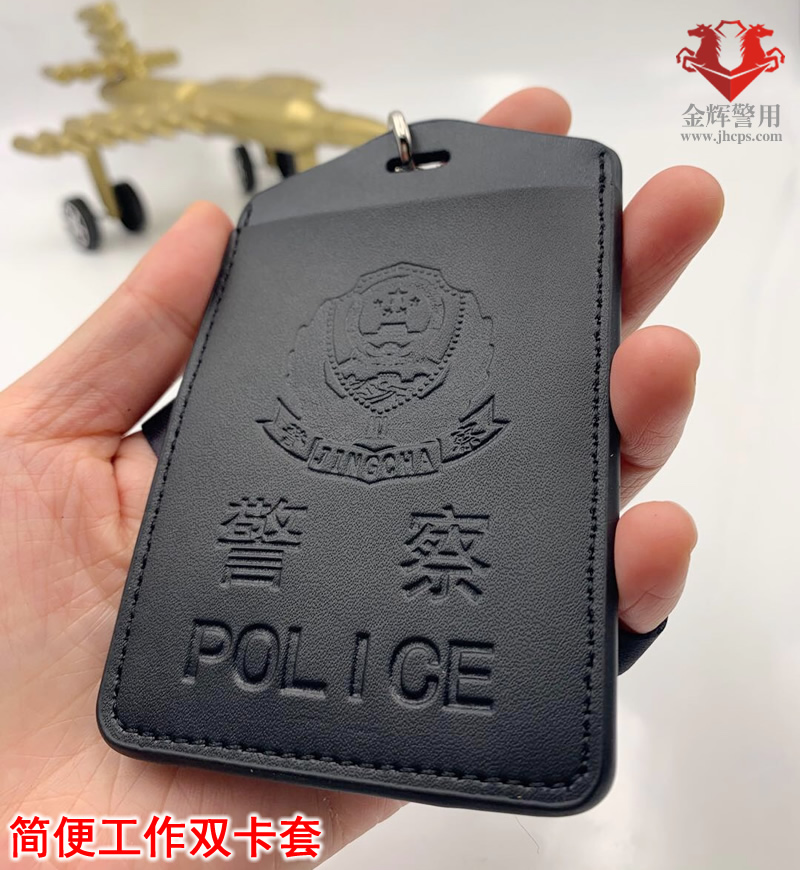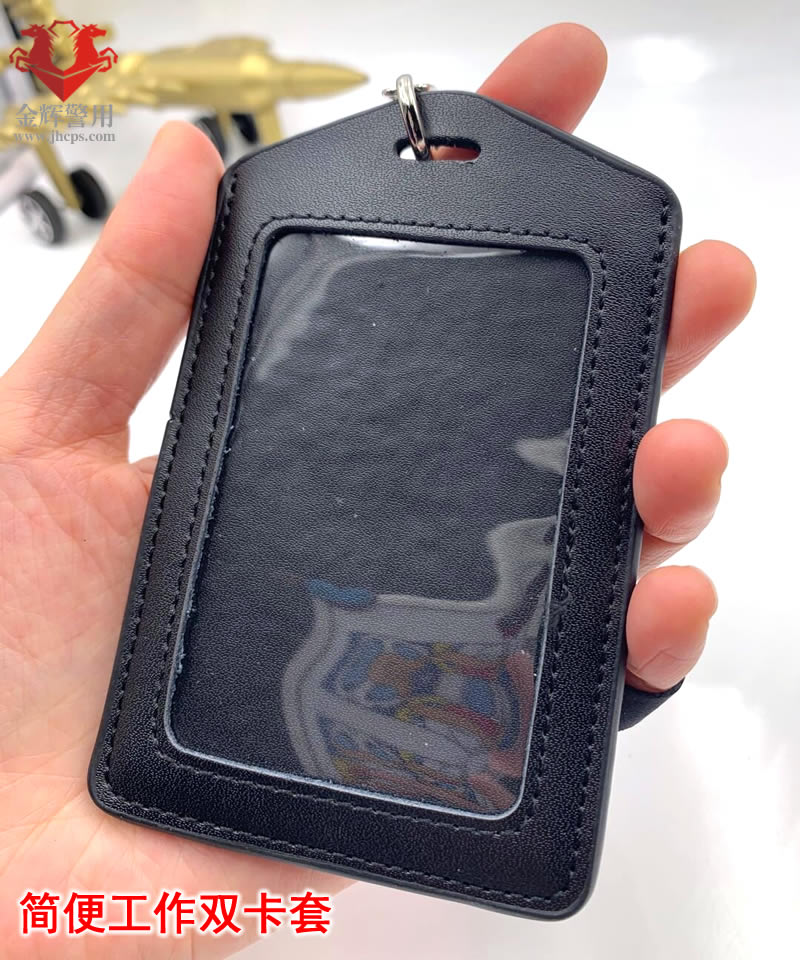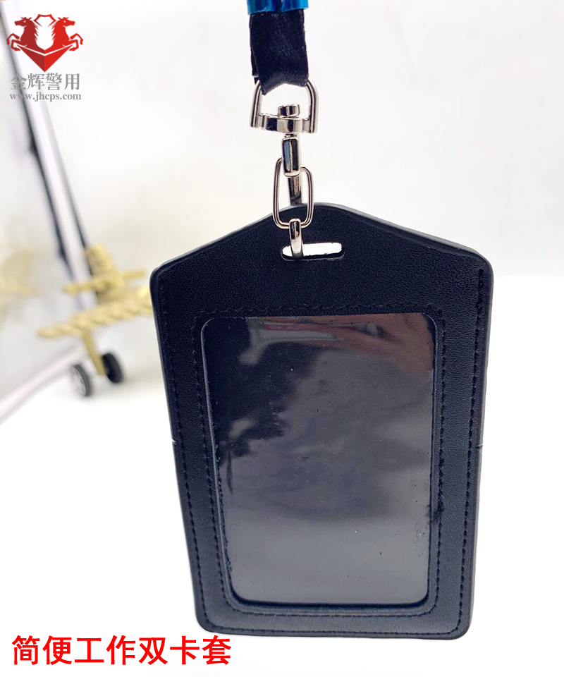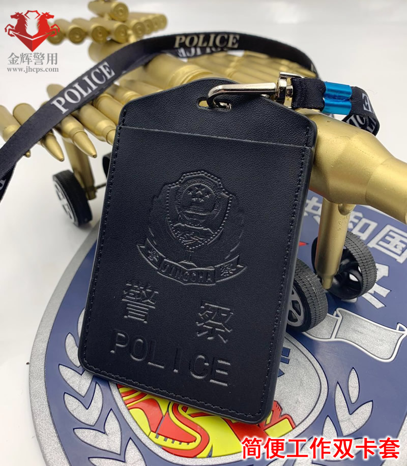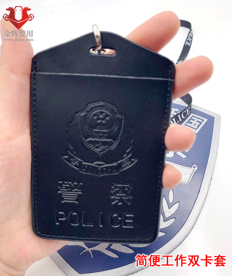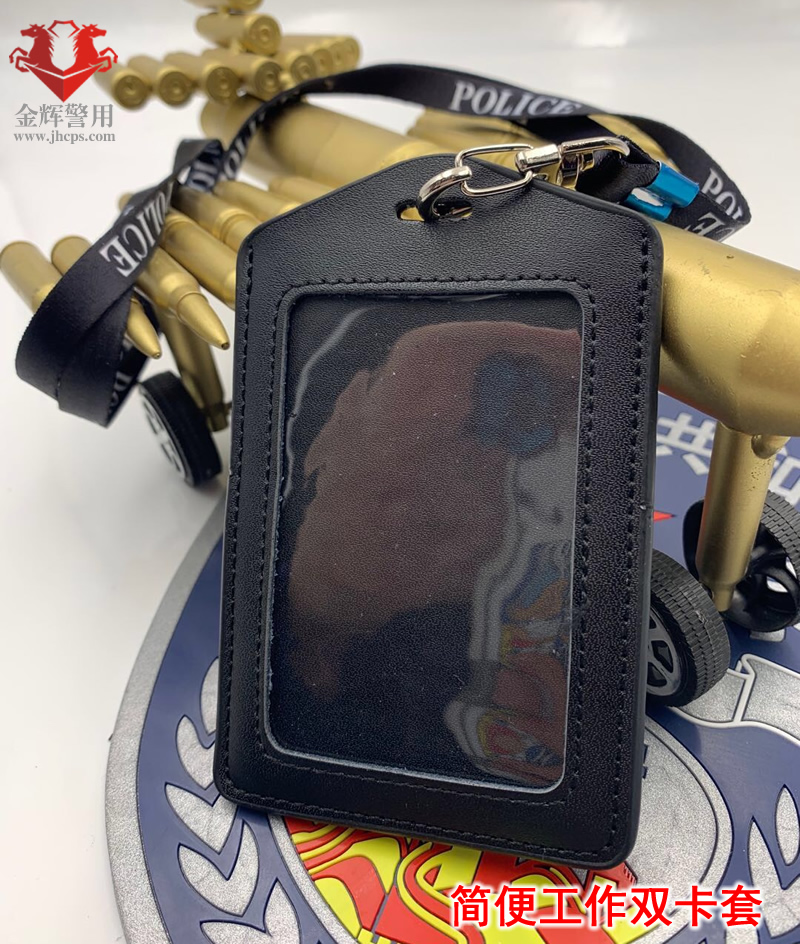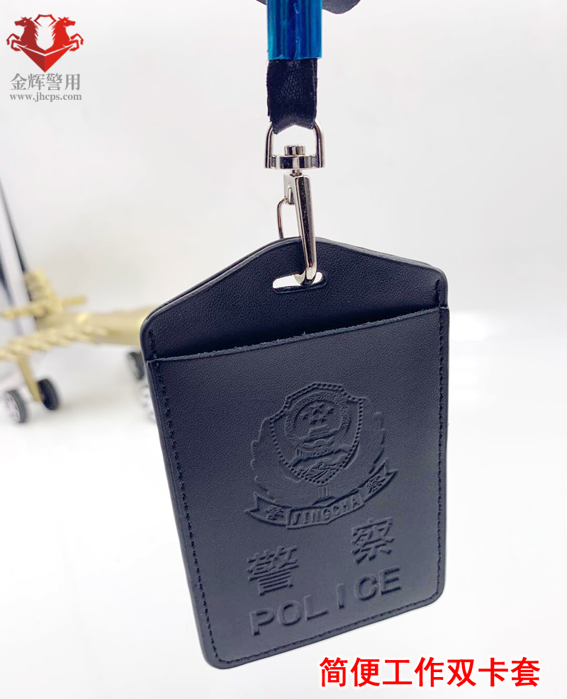 警用簡便掛(guà)式(shì)工作證套,配置尼龍警用掛繩,牛皮材料,重量輕,內部可放警察證卡片和單位門禁卡。