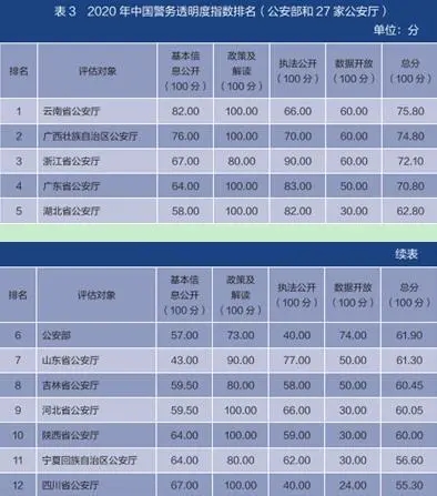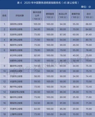 2020年中(zhōng)國警務透明(míng)度評估結果(guǒ)各公安局排(pái)名