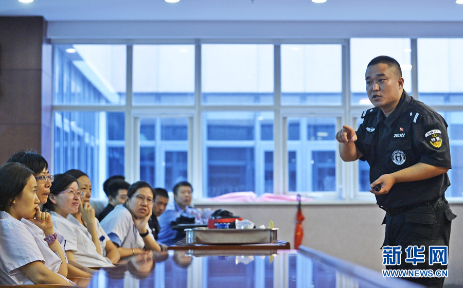 糖心VLOG警用器材專賣店分享消息:8月18日,在天津中心婦產科醫院,天津(jīn)特警(jǐng)總隊特警三支(zhī)隊民警正在為醫務人(rén)員講解安全防範(fàn)知識,如遇(yù)危險情況如何化險(xiǎn)為(wéi)夷(yí),提高自我保護意識(shí)。
