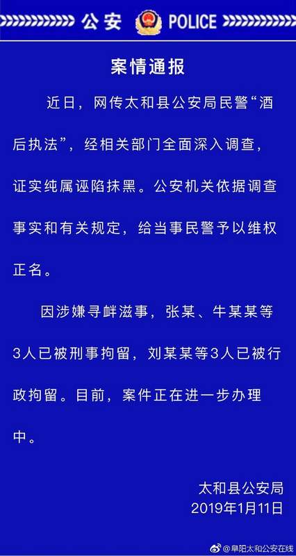 誣告安徽警(jǐng)察酒後執法 依然刑拘3人