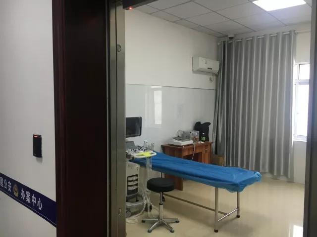 有人不禁要問,送到看(kàn)守所不是要體檢嗎?不用擔心,辦(bàn)案(àn)中心還配備了體檢室(shì),區人民醫院每天都會派一名醫生來值班,專門負責嫌疑(yí)人體檢工作。民警隻要在旁邊看著就行