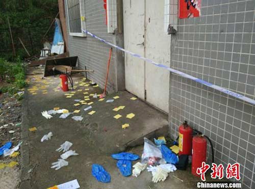圖上為案發現場,至今還(hái)留下勘查民警穿著的(de)手套和頭套(tào)