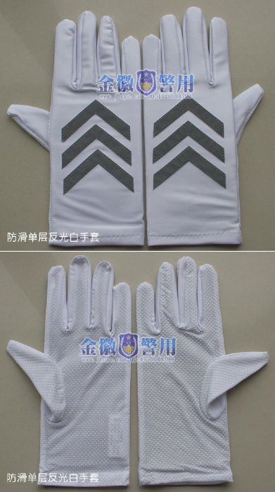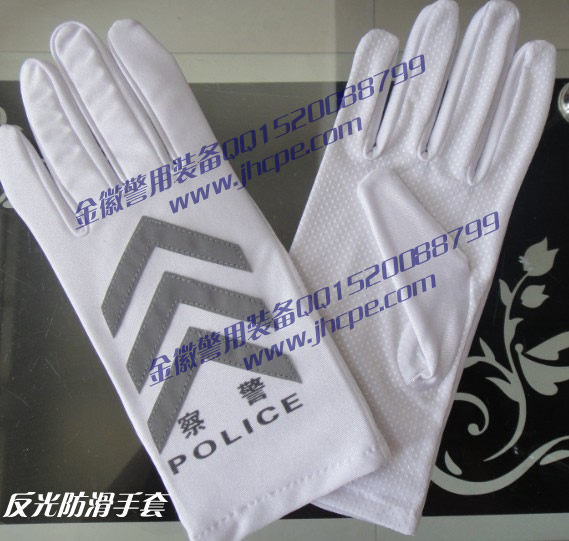 警察反(fǎn)光執勤手套 交巡警指揮(huī)手套 POLICE警用(yòng)手套白色(sè) 防滑警察手套